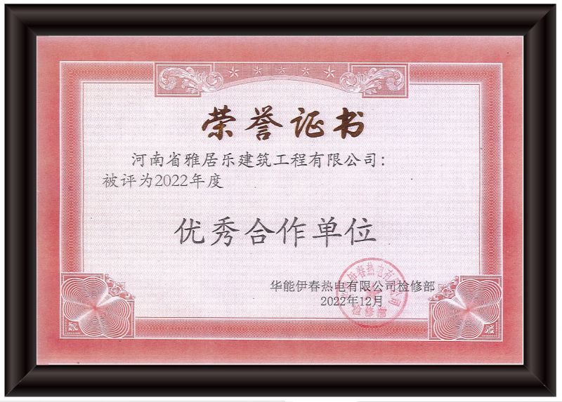 华能伊春热电颁发2022年度荣誉证书