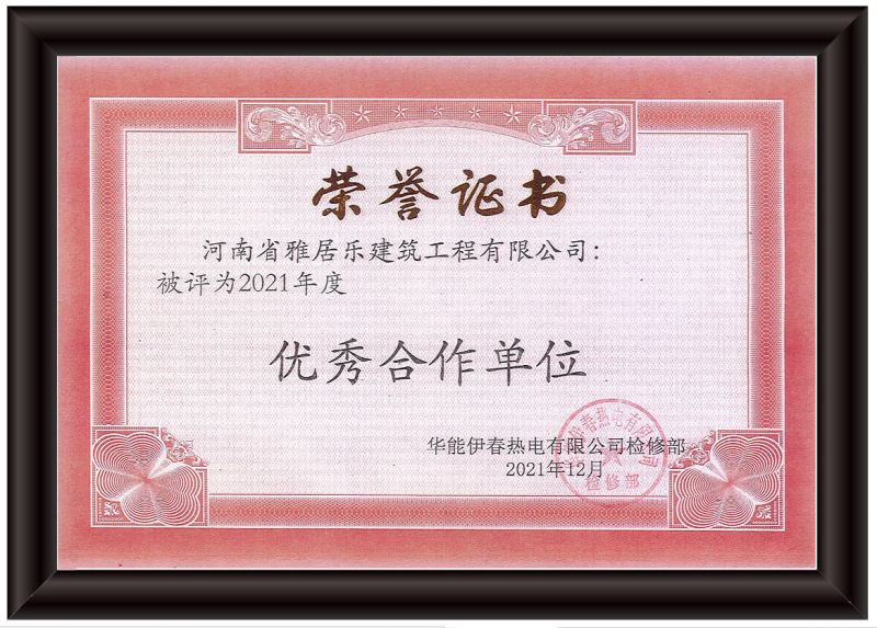 华能伊春热电颁发2021年度荣誉证书